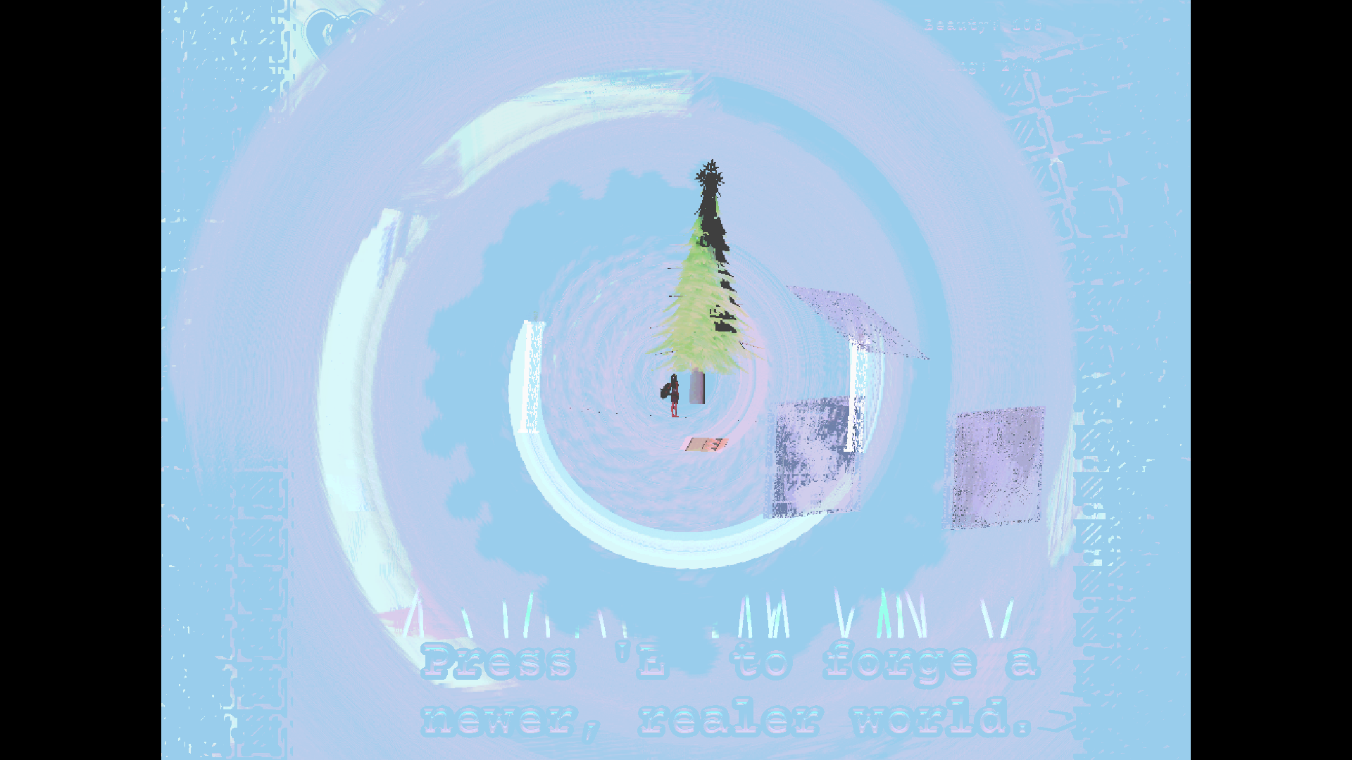 WASD or Arrow Keys to walk around. Press E to forge a newer, realer world. Press Q to toggle UI. Press M to toggle audio. Search fruitlessly and endlessly for meaning and beauty, unaware of the things you walk away from.